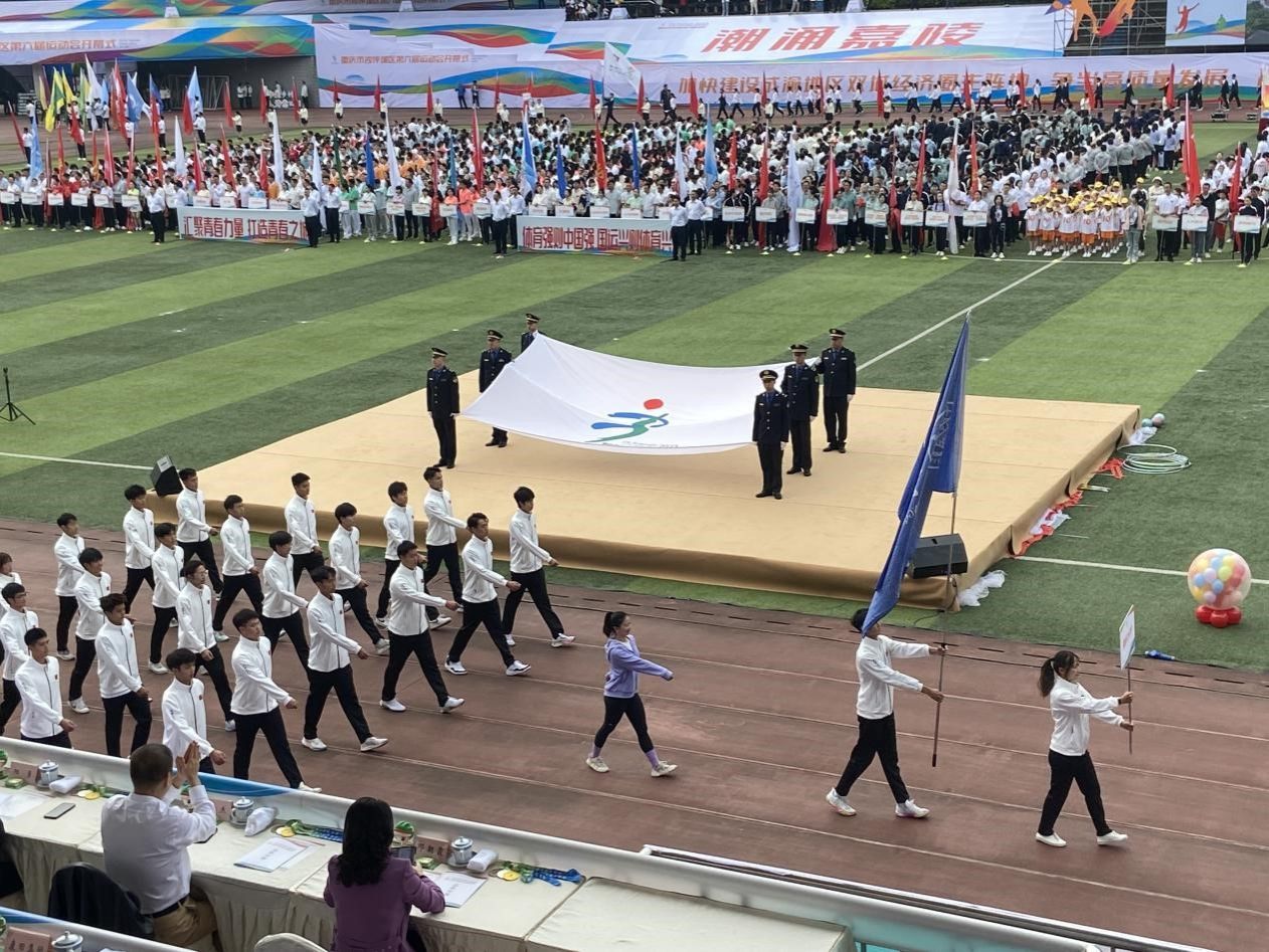 学生方队代表学校参加重庆市沙坪坝区第六届运动会开幕式,本次活动由学校党校办总负责,*Blh漫画