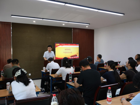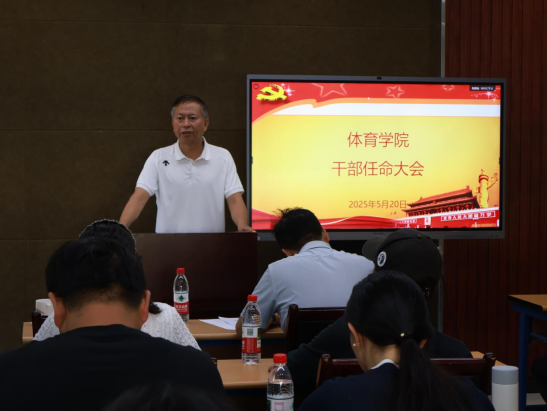 最后,田辉对学院未来工作提出四点要求。一是加强学习,提高政治站位,深刻领会体育强国、教育强国战略以及体育融合发展的重要意义,将其贯穿于学院各项工作中。二是要团结协作,形成强大合力,全体教职工要心往一处想,劲往一处使,拧成一股绳,共同攻克发展中的难题。三是广泛开展调研,走群众路线,坚守教学这一学院发展之本,深入了解师生需求,为教学工作提供有力支撑。四是勇于创新,秉持牺牲精神与服务精神,在工作中不断探索新方法、新思路,以创新驱动学院发展取得新突破。