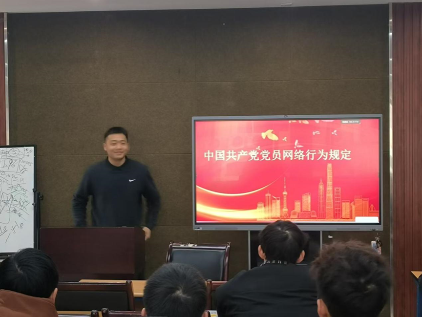 活动伊始,李松洋同志对规定进行了深入解读。强调党员的网络行为不仅代表个人,更与党的形象和声誉紧密相连。网络行为涵盖了在各类网络平台,如社交媒体、网络论坛、即时通讯工具上的言论发表、信息传播、社交互动等言行,党员在网络空间要积极传播正能量,坚决抵制不良信息,主动维护网络秩序。