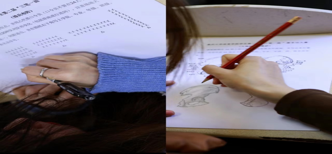 首先进行的是“一画”比赛。在绘画人体骨骼图时,同学们认真观察,细心绘制,以绘画的方式展现出他们对于人体解剖学的理解和掌握。队列队形绘图环节重点考验的是同学们的空间感和构图能力,教学小人图绘画则是别开生面,同学们充分发挥自己的想象力,为比赛增加了更多的趣味性。