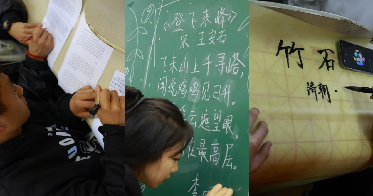 接下来是“三笔”比赛,同学们在毛笔、钢笔和粉笔的比赛中展示了他们良好的基本素质,落笔生花,每一位同学都十分认真的对待落下的每一笔。