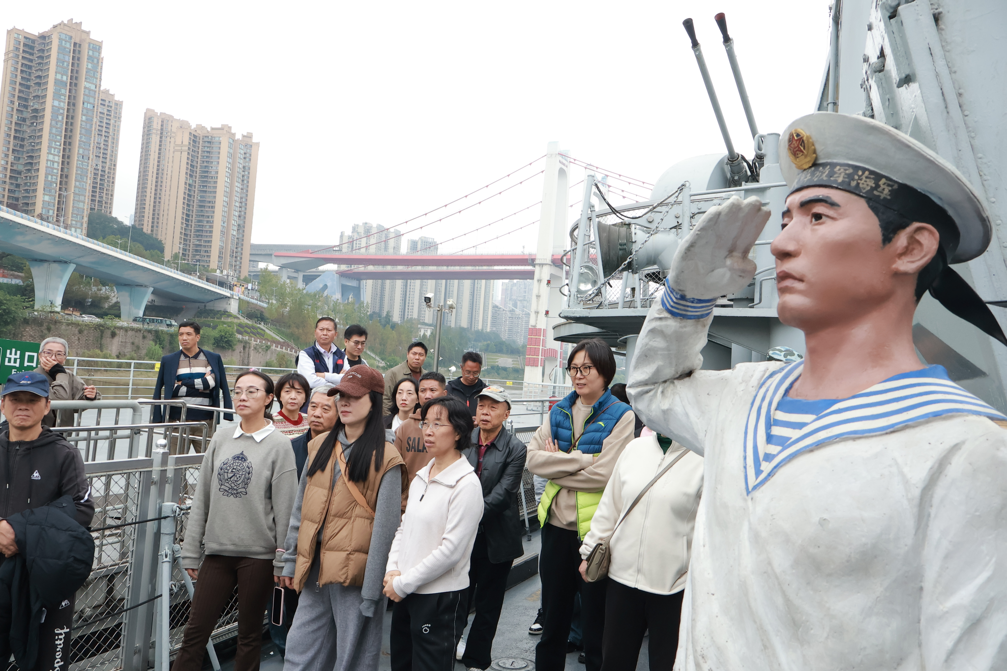活动首站,教职工们抵达了庄严的166舰陈列馆。矗立在长江之畔的166舰,是我国国防现代化建设的历史见证。在讲解员的引导下,大家登舰参观,详细了解该舰的光辉历程和人民海军的英勇事迹。通过近距离感受军事装备的震撼和聆听背后的强国故事,老师们接受了一次深刻的爱国主义教育,极大地激发了爱国热情和历史责任感,坚定了为祖国发展培养更多优秀人才的理想信念。