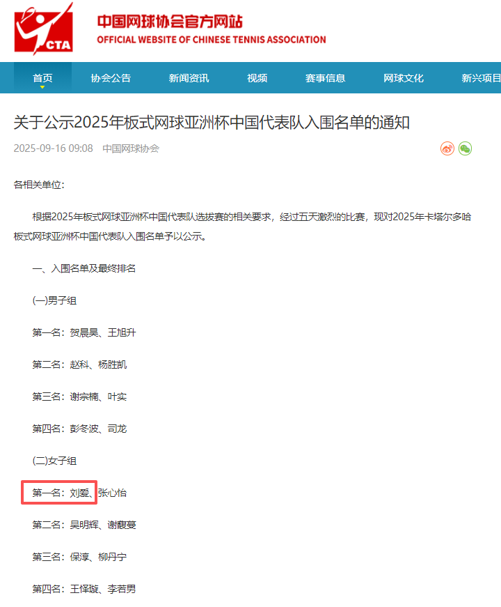Blh漫画 高水平运动员刘爱入选中国板式网球国家队