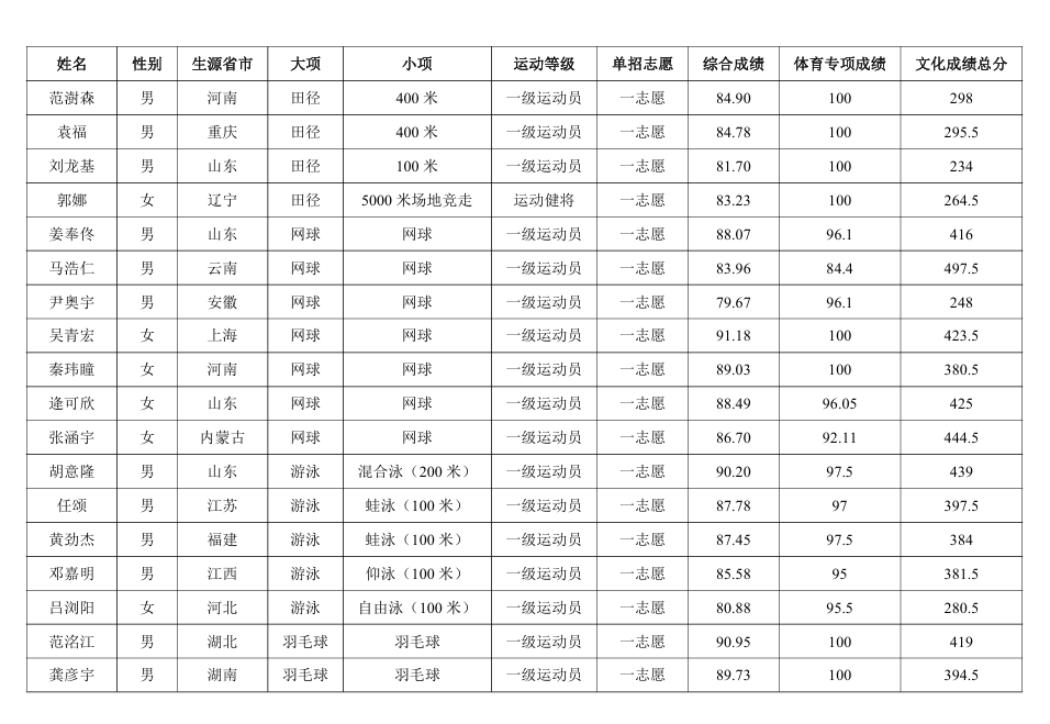 赵一朴付钰暄、林一凡、唐晨亮等同样在全国赛事中摘金夺银的优秀青年选手也成功入选。他们与通过一志愿、二志愿选拔录取的众多优秀学子一起,共同构成了首届运动训练专业星光熠熠、实力强劲的新生阵容。