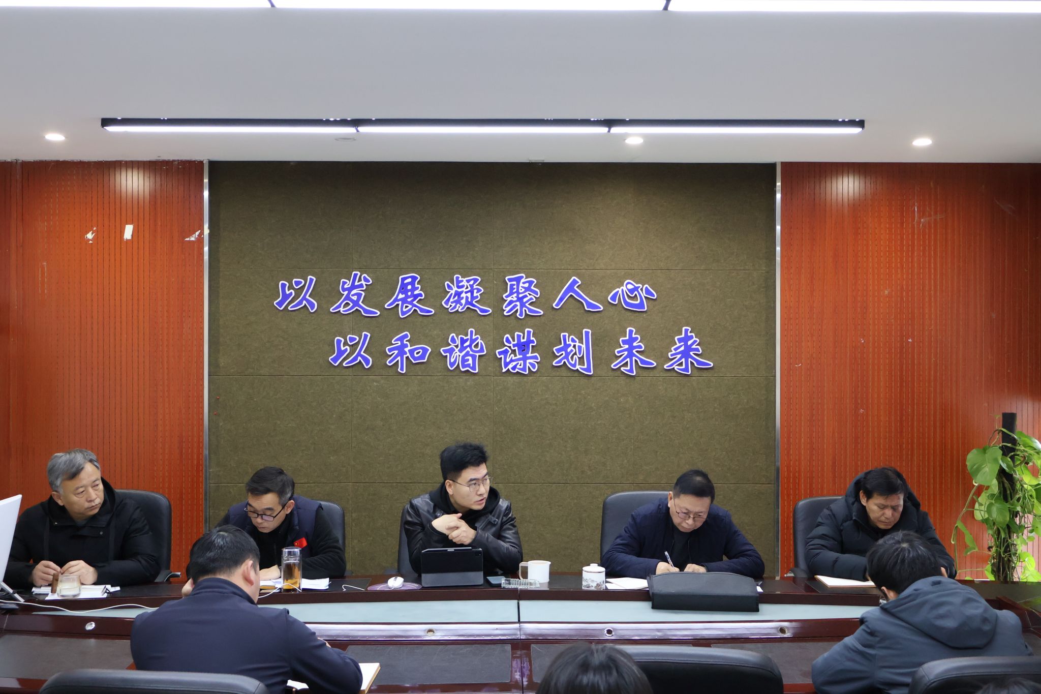 党委在211会议室组织院党委理论学习中心组全体成员集中学习全国两会精神。学院党委书记田辉领学,学院领导班子成员刘斌、李永、落云柯、潘建华,学院党委委员、纪委委员、组织委员、各系(中心、室)主任、各党支部书记等参加会议。
