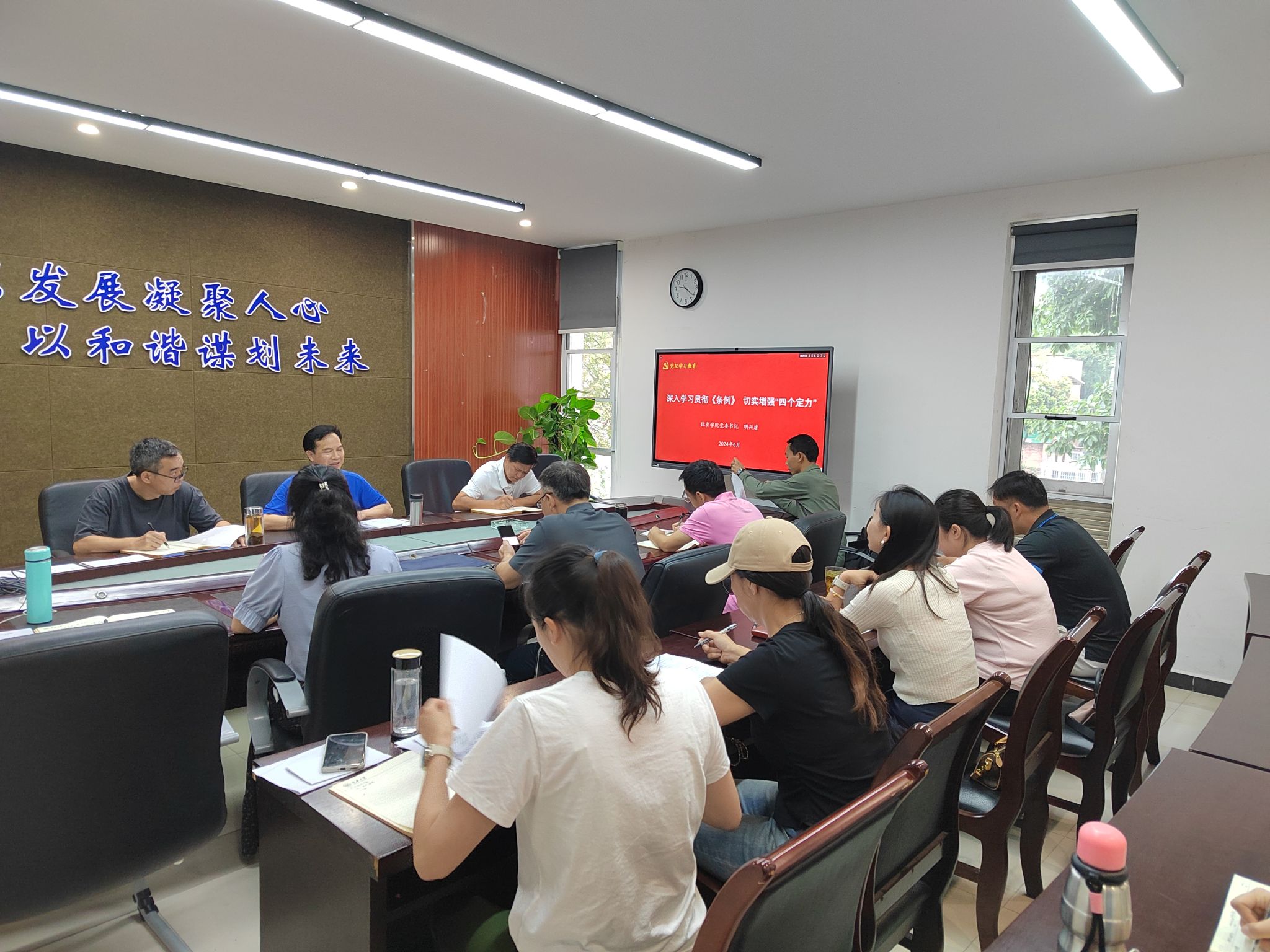 2024621日上午,为扎实推进主题教育,深入学习贯彻习近平新时代中国特色社会主义思想,进一步巩固党学习教育成果,不断提高党员干部的党性修养,凝心聚力促发展,*Blh漫画 党委明兴建书记以“深入学习贯彻《条例》  切实增强“四个定力”为主题讲授了专题党课。学院领导班子成员、党委委员、纪委委员、各系(中心、室)主任、各党支部书记、党委组织员等近20人参加会议。