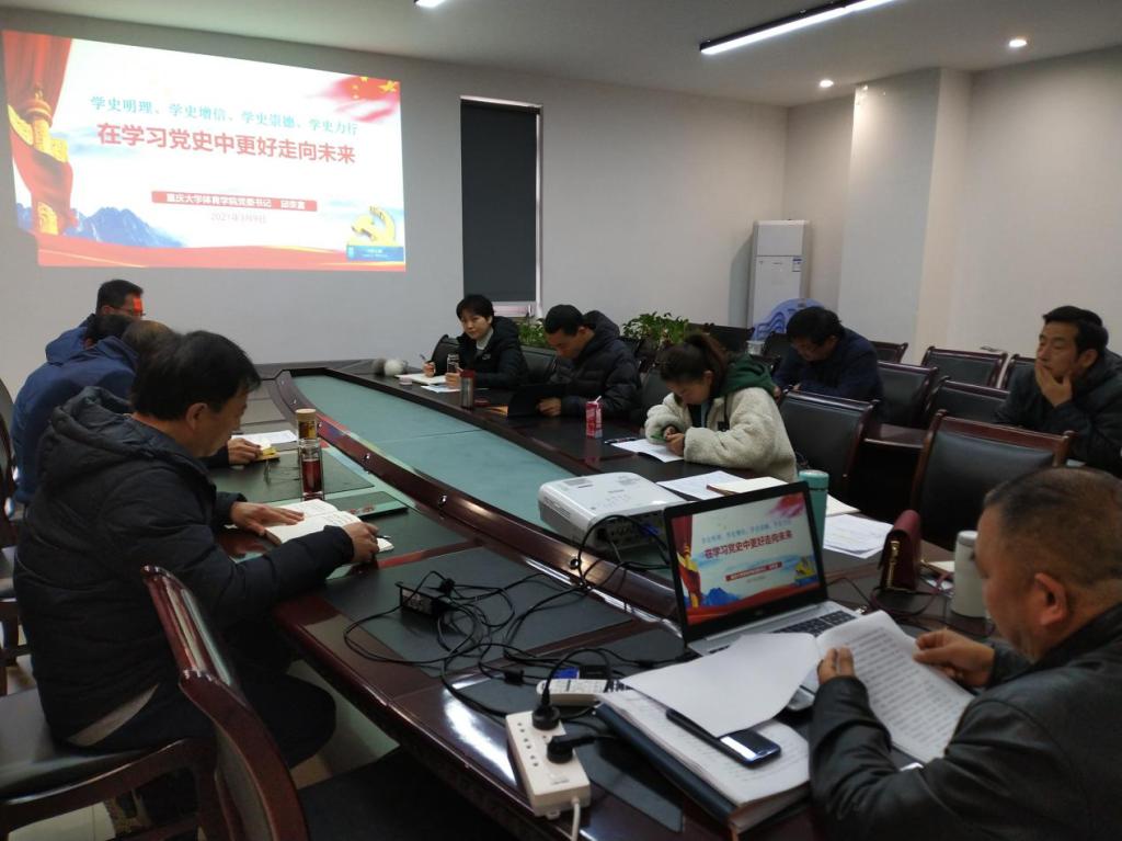 从百年党史中获得启迪、寻求滋养,不仅要在“知”上下功夫,更要在“行”上见成效。邱荣富联系学院的工作实际,要求大家要带头认真学好党史,强化责任担当,认真履职尽责,特别是要积极发挥好学院领导班子的核心和表率作用。学院要认真贯彻党的教育方针,坚持社会主义办学方向,以“立德树人”为根本,不忘立德树人初心,牢记为党育人、为国育才使命,更好地发挥体育在学校人才培养中的作用,为培养德智体美劳全面发展的社会主义建设者和接班人作出新的更大贡献。