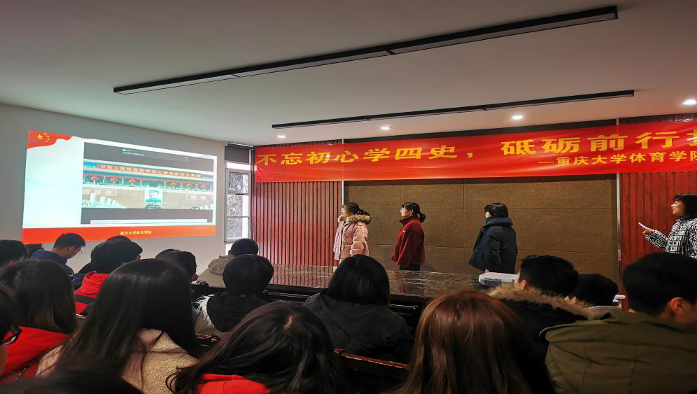 研究生党支部组织的 “不忘初心学四史,砥砺前行担使命”特色党团活动在210会议室举行。本次活动分为诗歌朗诵、“声”临其境、“知”史“明”史知识问答以及大合唱4个环节,学院全体研究生参加。