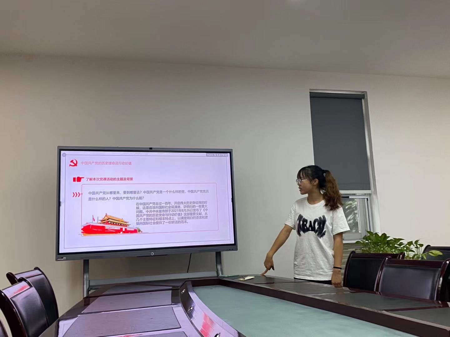 本次党课的第一部分由杨子怡同志给大家讲述了中国共产党的历史使命与行动价值的重要部分——为人民服务。该部分主要分为四个板块,分别是把人民放在心中最高位置;依靠人民不断取得胜利;实现人民当家作主;让人民过上好日子,并结合国家发展及疫情期间的实际情况做了详细阐述与论证,让在座的同志们进一步的了解到了中国共产党的历史使命与行动价值的内涵。
