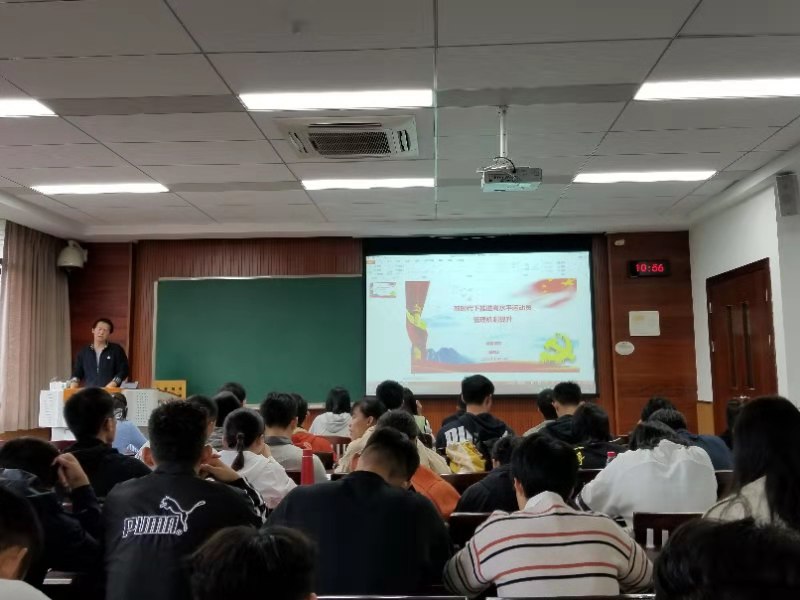 院长许定国、副院长潘建华、副院长落云柯,院组织员陈婷、本科生研究生辅导员汤婕、尚家敏以及研究生一年级全体学生与本科生一、二年级全体学生。