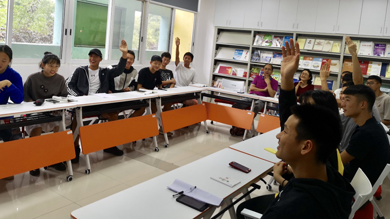 接下来是问题讨论发言环节。在说到“你对祖国发展变化的印象”时,刘锦泉同学就现代大国经济的政策变化及社会文明的进步表达了自己的理解,钟震宇同学以家乡火车地铁线路的普及看祖国的发展变化作了回答。