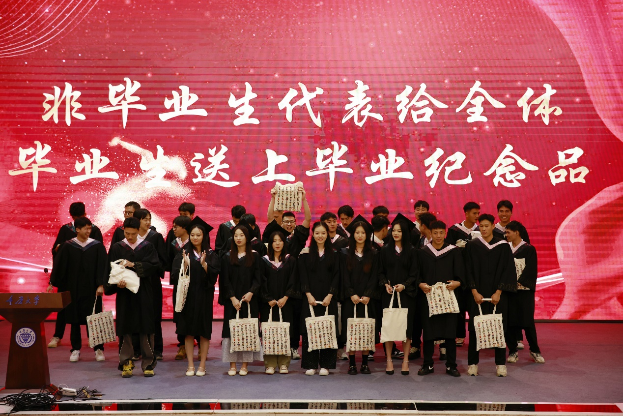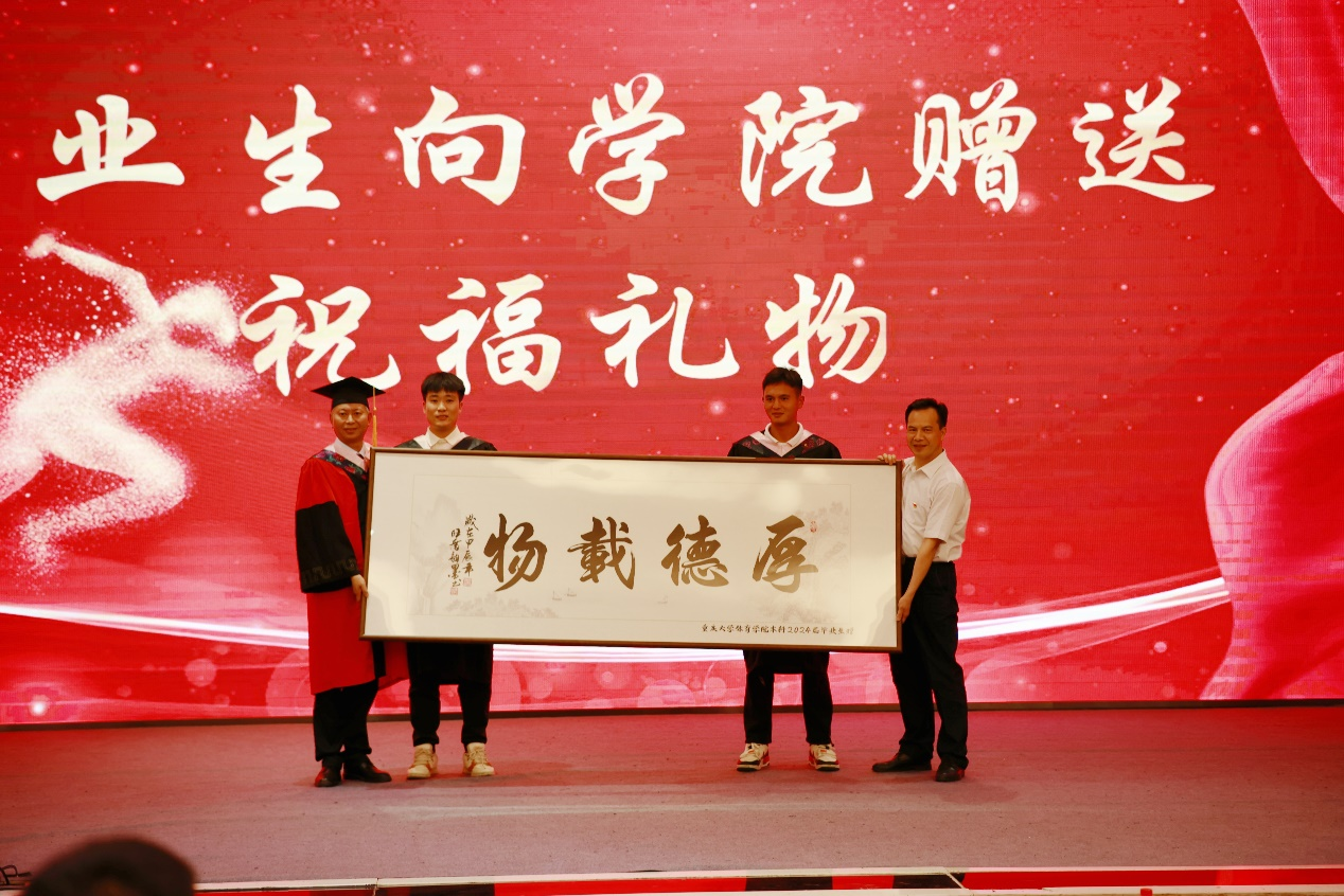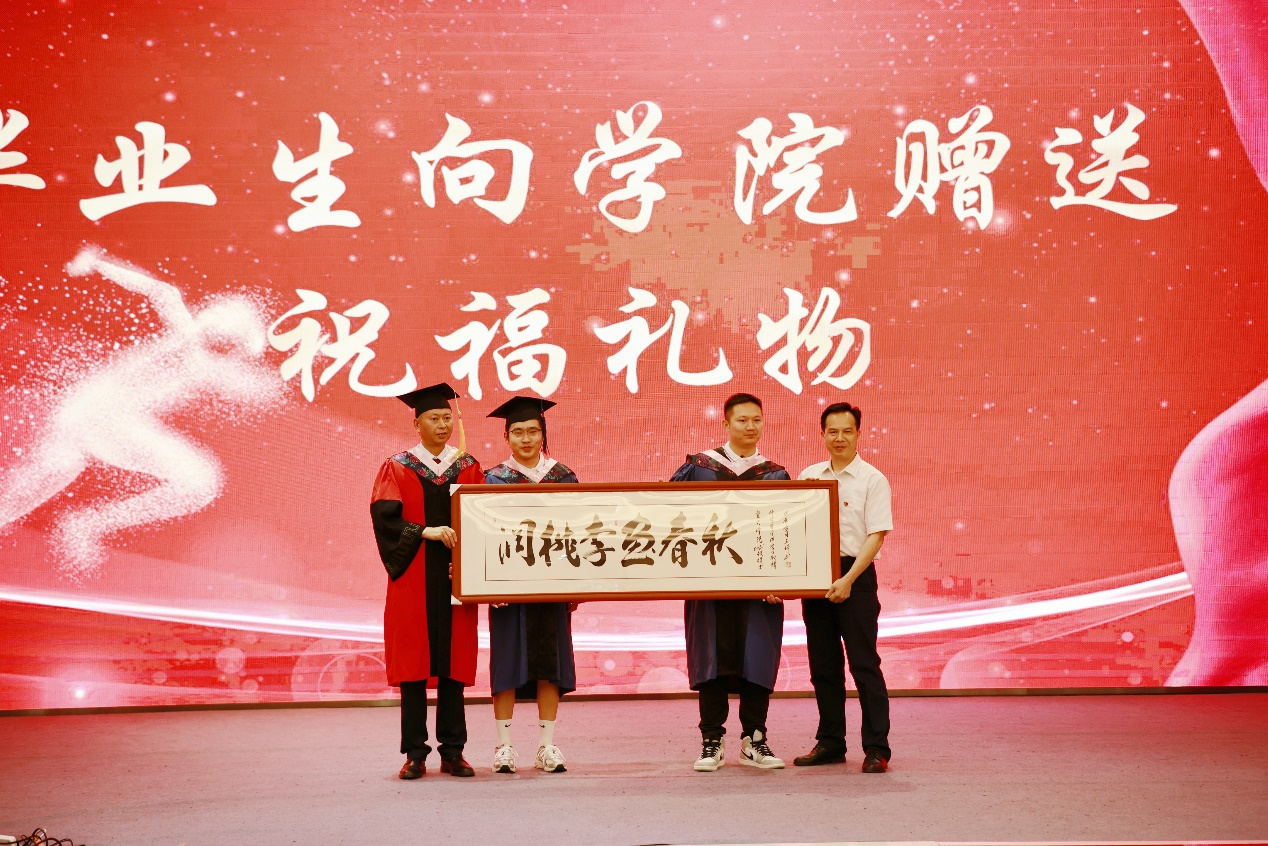 毕业研究生和毕业本科生代表分别向学院赠送祝福礼物,表达了毕业生们对学院的眷念不舍和对老师们谆谆教诲的感谢之情。