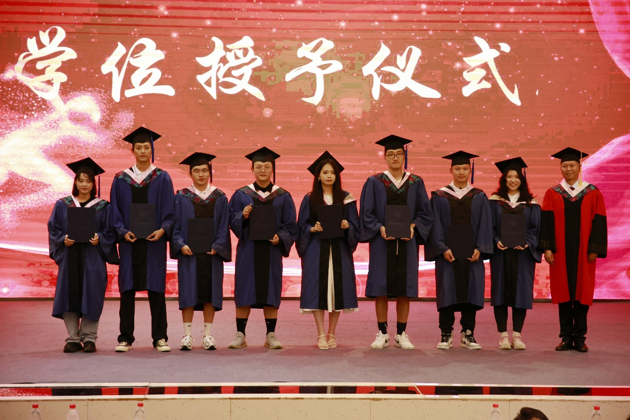 学位分委员会主席刘斌给毕业生拨穗正冠、授予学位证书。