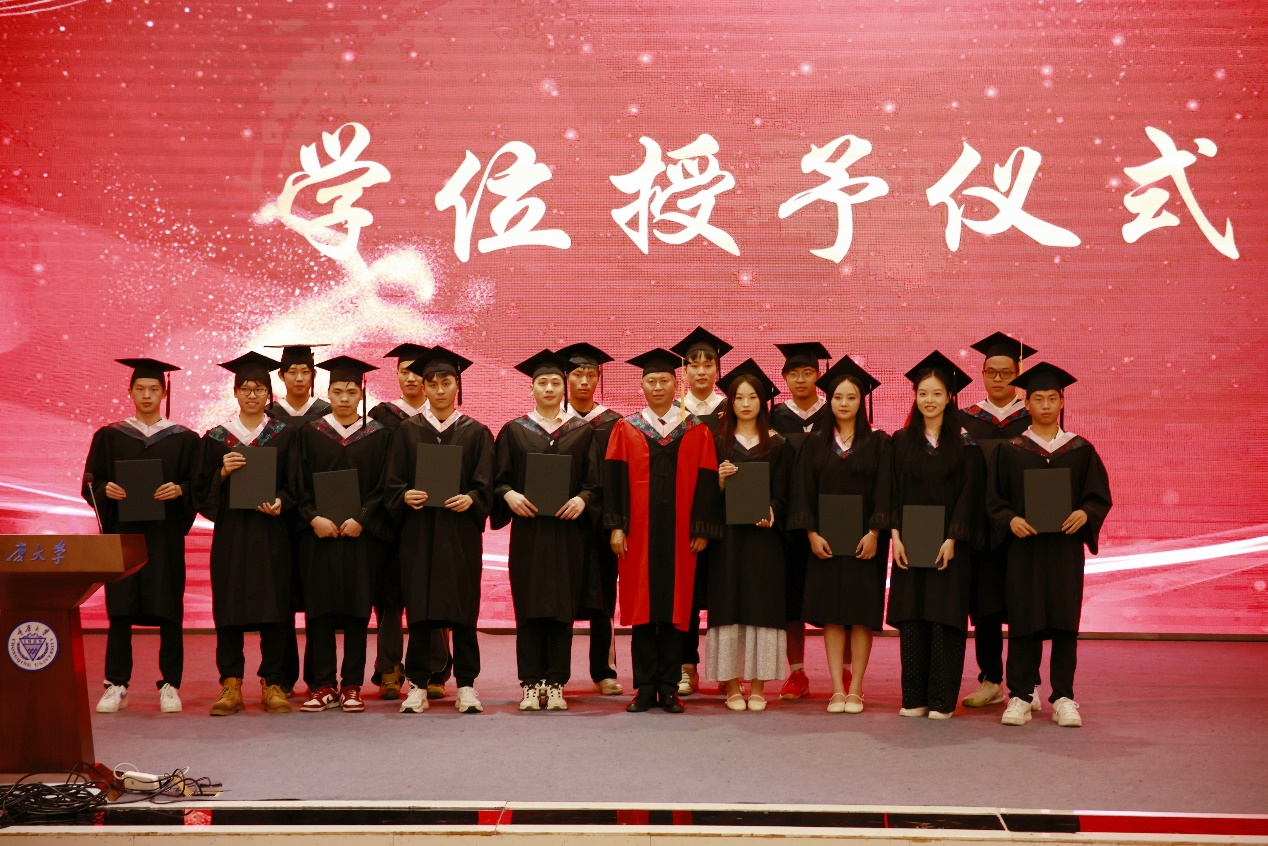 2024届学生毕业典礼暨学位授予仪式在虎溪校区图书馆1F-7如期举行。学院党委书记明兴建,院长刘斌,党委副书记李永,副院长落云柯、潘建华,教师代表,学生家长家属代表以及全体本科生研究生参加。典礼由学院团委书记汤婕主持。