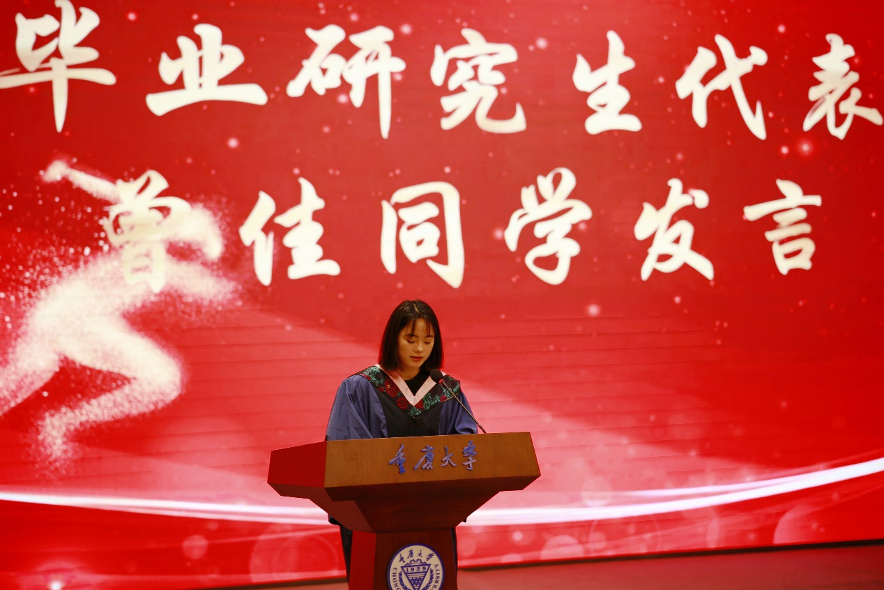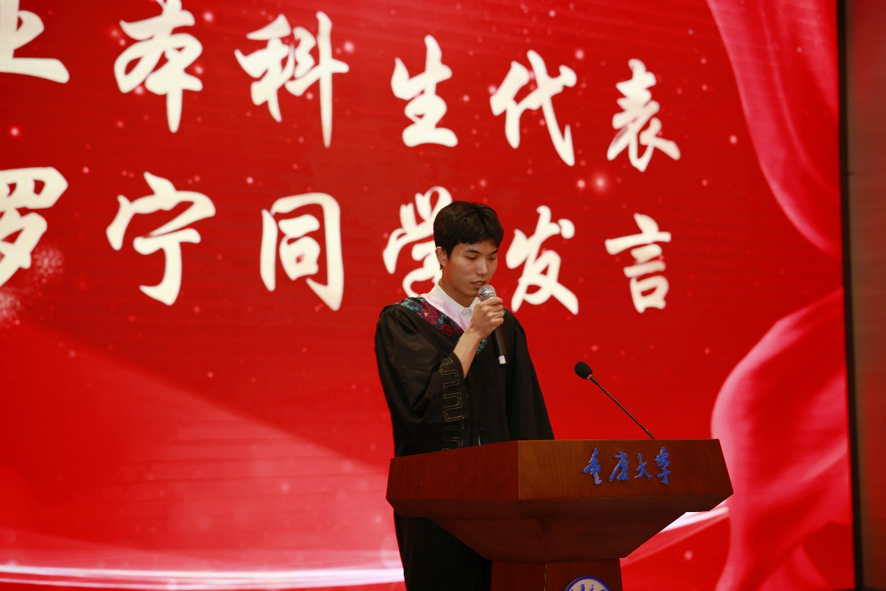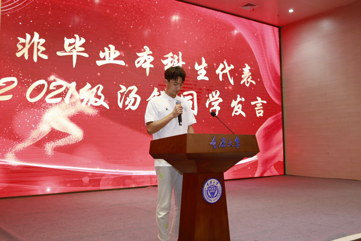 非毕业生代表汤锐和王圳两名同学送上由衷的祝福:毕业是一段美好故事的结束,更是另一个全新篇章的开始,祝师兄师姐们在今后的道路上取得更大的成就,所向披靡,前程似锦。