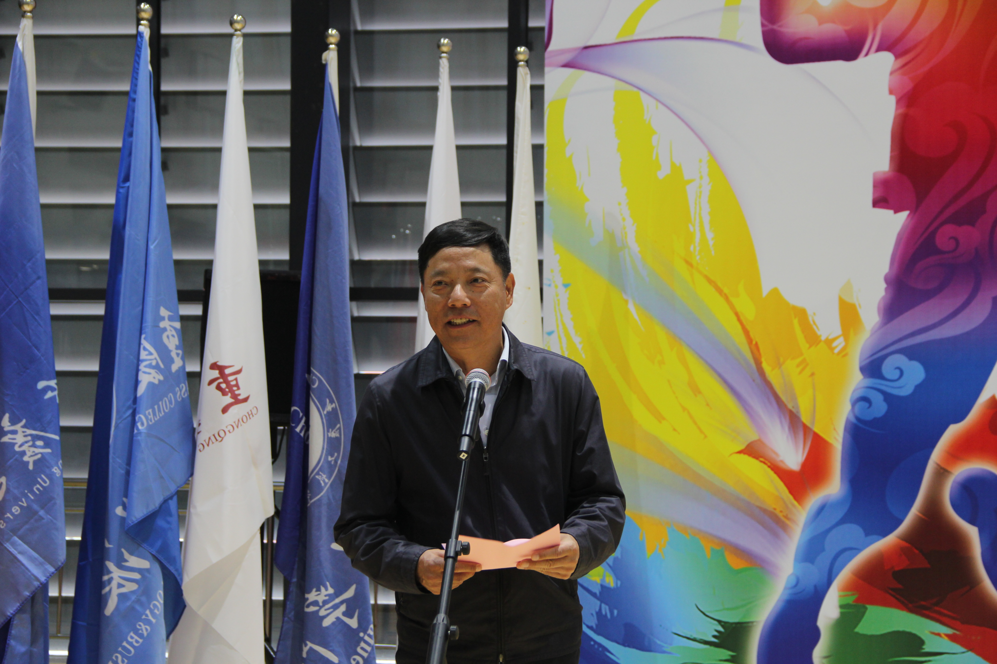 张欣致开幕词,他指出2024年大学生羽毛球比赛是重庆市全民健身的一次精彩展示,也是体教融合发展中的一个亮丽剪影,更是各高等院校精神风貌的一次激情呈现。同时,以此次羽毛球比赛为契机,推广普及重庆市的羽毛球运动,提升羽毛球运动水平,进一步宣传竞技体育精神,倡导健康有益的生活方式,使更多同学投身到体育锻炼中。