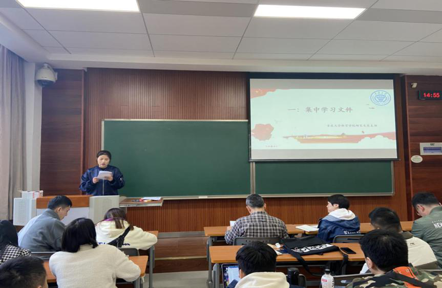 党委副书记李永,研究生党支部书记尚家敏出席会议,学院全体研究生党员参加了会议。会议由支委赵雨洁同志主持。