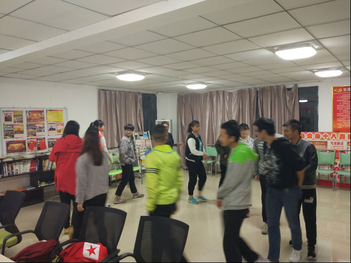 ,输了的就要自我介绍,现场气氛相当活跃 。然后宣传部的金开荣说“这个游戏有个寓意,这个寓意就让别人怎么认识你,记住你。在你以后的职业生涯中,工作中,这个是非常重要的环节,只要你学会了,就要比别人抢先一步得到先机。所以大家劲量要学会怎么让别人认识你,这门必修课。”随后宣传部的金开荣拿出了张纸,发给了2016级的班委们,然后宣传部金开荣叫班委们写上自己一年后要完成的目标,学生会干部做见证人,来见证你们一年后实现自己的目标没有。班委们都信心满满的的写上自己的目标。然后金开荣将名叫《图书馆读者手册》的书发给了班委,并且给班委们叫了这本书的用法,之后宣传部金开荣又给班委们推荐了8个公众号有“重大青年”“Blh漫画