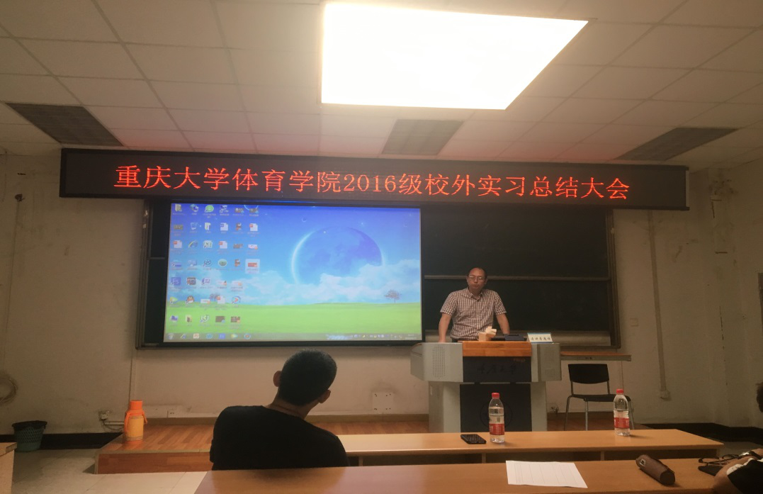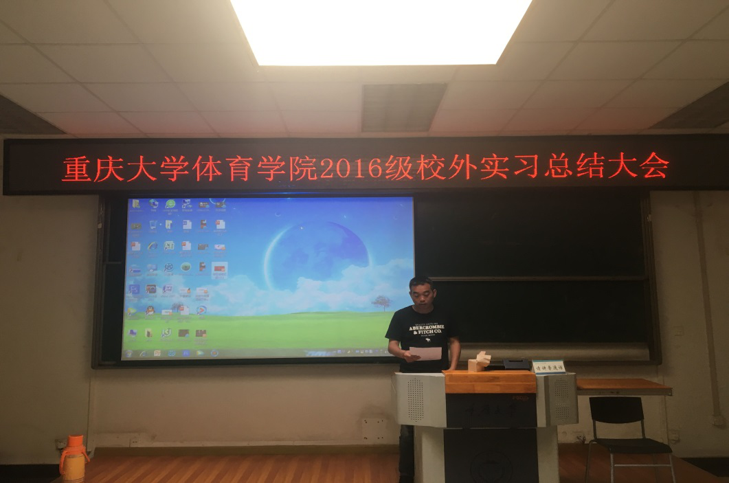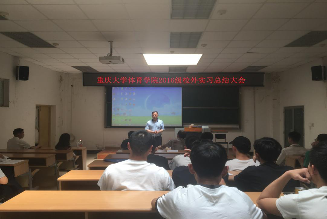 4月25日下午,*Blh漫画 2016级学生校外实习总结大会在学院阶梯教室举行。学院院长许定国、党委副书记李永、副院长落云柯、院团委书记汤婕及2016级本科生参加了本次会议。会议由学院体育教育系主任娄方平主持。