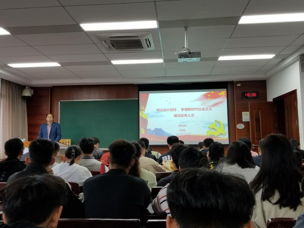 院长许定国、副院长潘建华、副院长落云柯,院组织员陈婷、本科生研究生辅导员汤婕、尚家敏以及研究生一年级全体学生与本科生一、二年级全体学生。