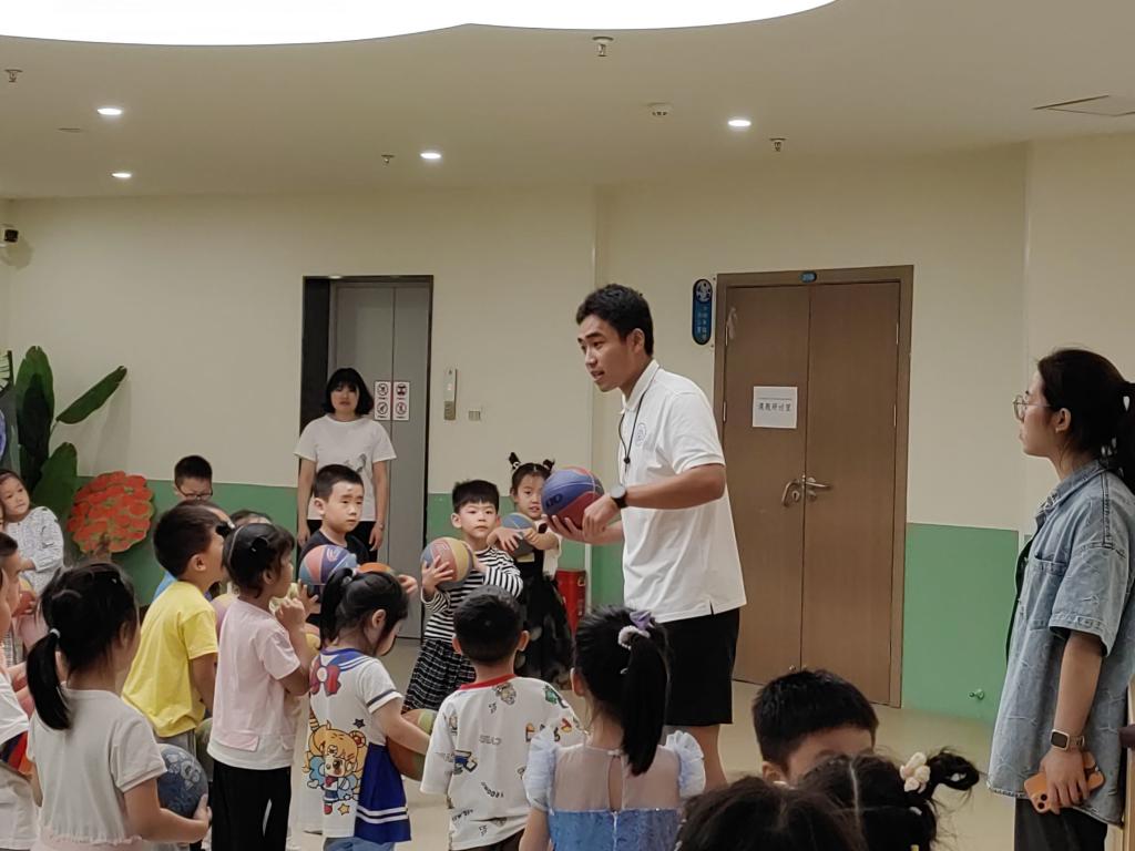 随后由三个小组所组成的小老师们分别带领着孩子们开展了体能课、篮球课和跳绳等特色体育课,在园内充满了运动的激情和孩子们的欢声笑语。