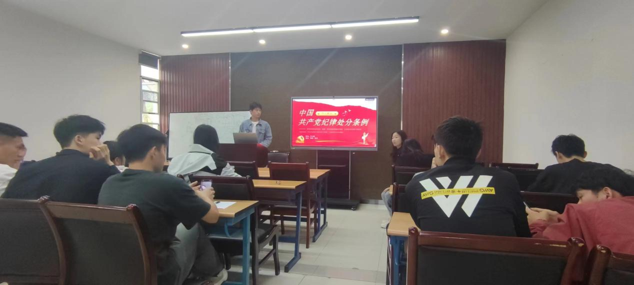 根据学院党纪学习教育工作总体安排,4月25日在210会议室,本科生党支部开展了《中国共产党纪律处分条例》专题学习组织生活会。本次学习会由本支部第一党小组负责领学,党支部全体同志参加。