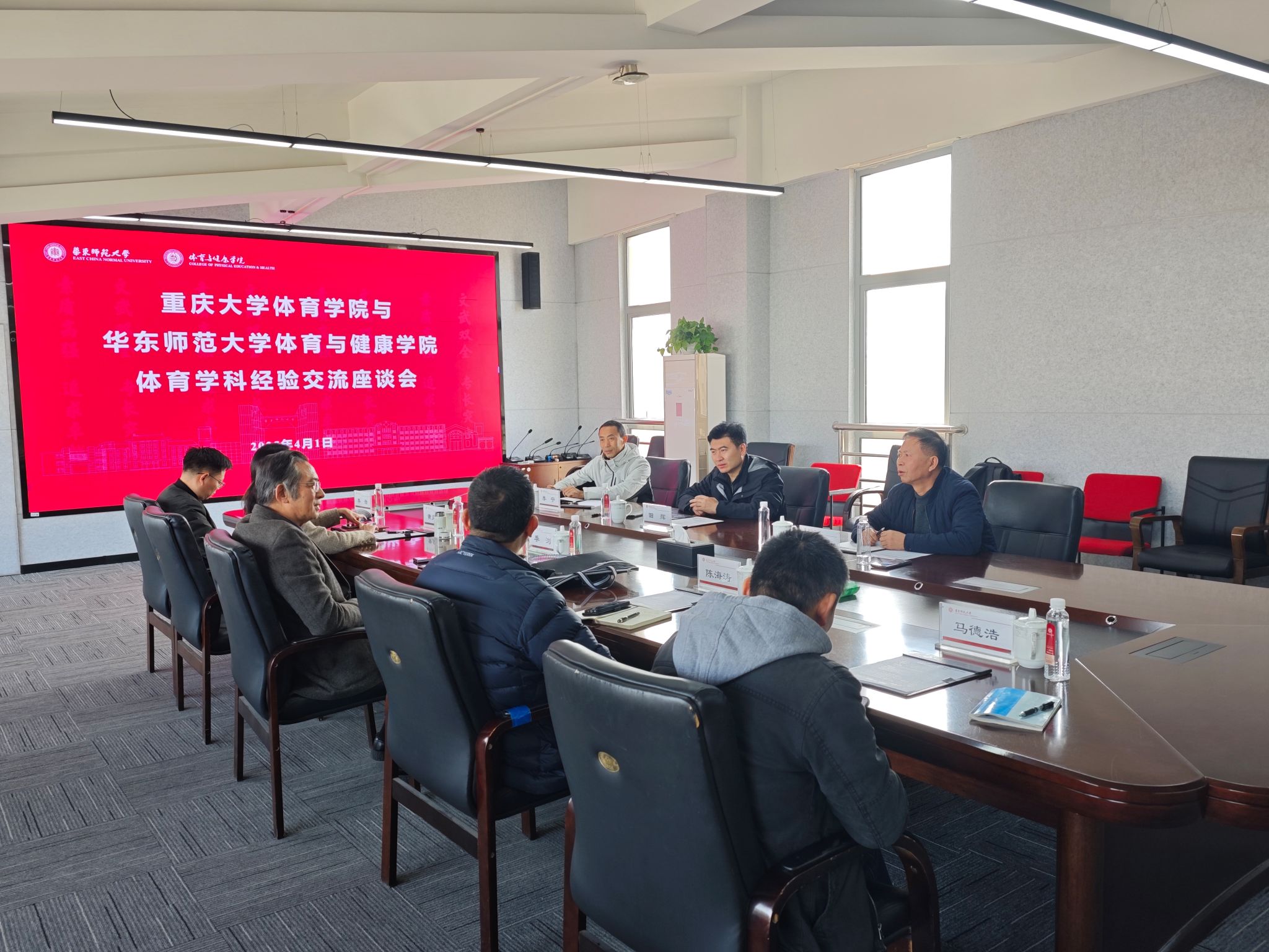 4月1日上午,重庆大学体育学院代表团前往华东师范大学闵行校区,与华东师范大学体育与健康学院举行经验交流座谈会。会议由华东师范大学体育与健康学院院长季浏教授主持,双方围绕人才培养、学科建设及学院发展等议题展开深入交流。