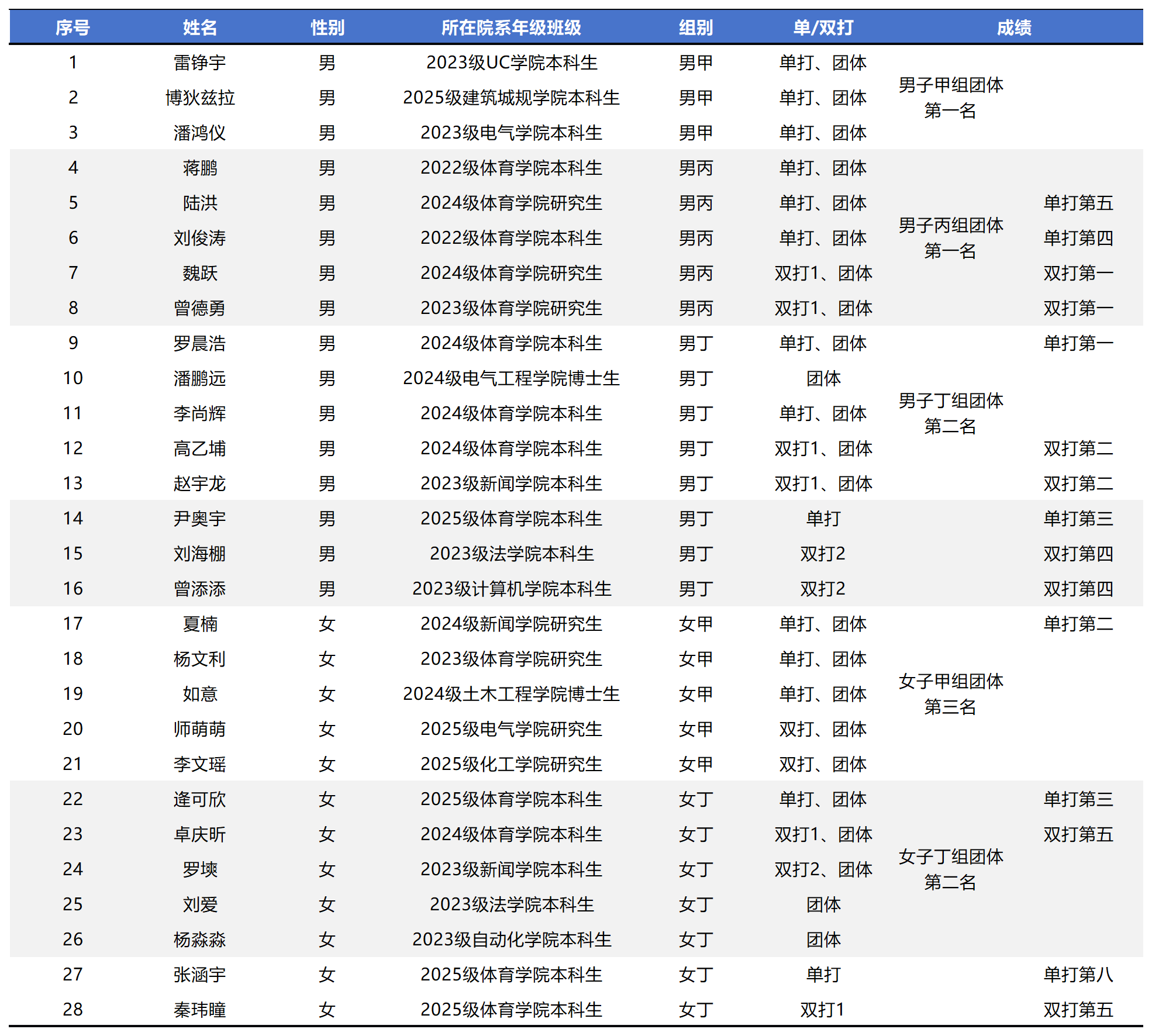 作为主要力量,派出多名本科生和研究生参赛并斩获多项冠军;新闻学院、法学院、计算机学院、电气学院、建筑城规学院、微电子与通信工程学院、光电信息科学与工程学院、土木工程学院、化工学院、自动化学院等多个学院的学生也积极参与其中,在赛场上跨界比拼、绽放光彩。