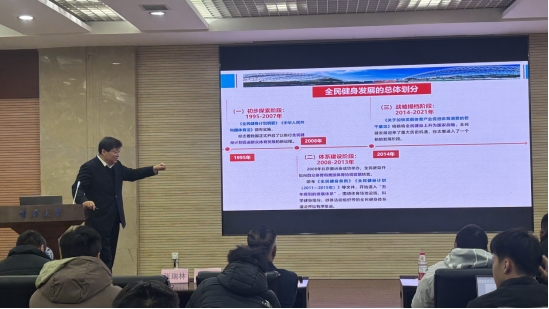 讲座伊始,刘斌院长对张瑞林教授的到来表示热烈欢迎,并指出在体育强国建设背景下,全民健身已成为国家战略的重要组成部分,高校体育学院应主动承担起理论研究和实践推动的双重责任。